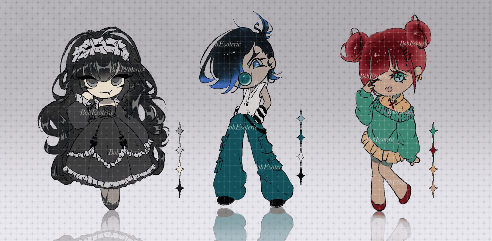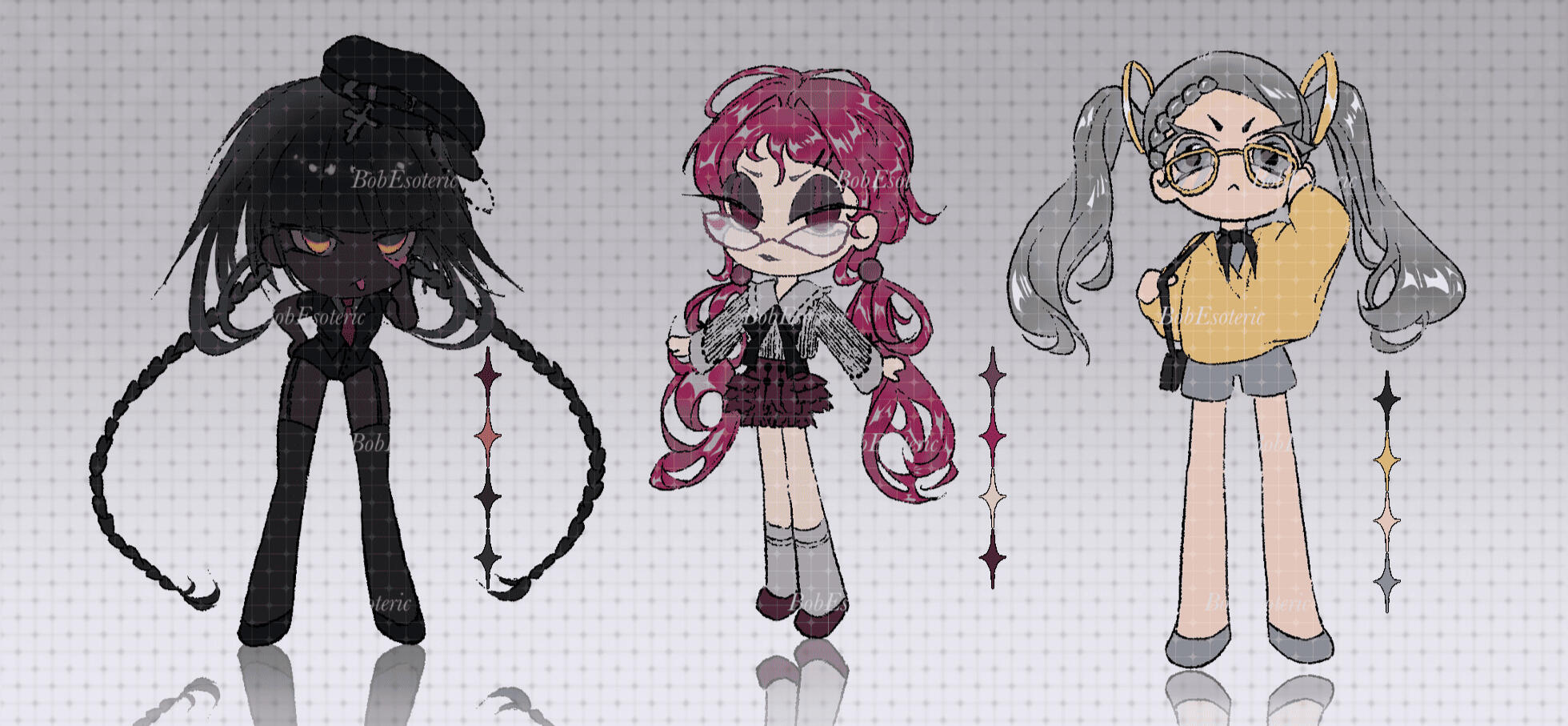 | Chibi style | Line | Flat coloring | Full render |
